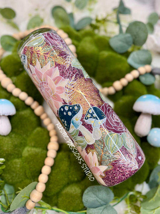 30 oz hand painted Fall Mushroom and Floral Tumbler