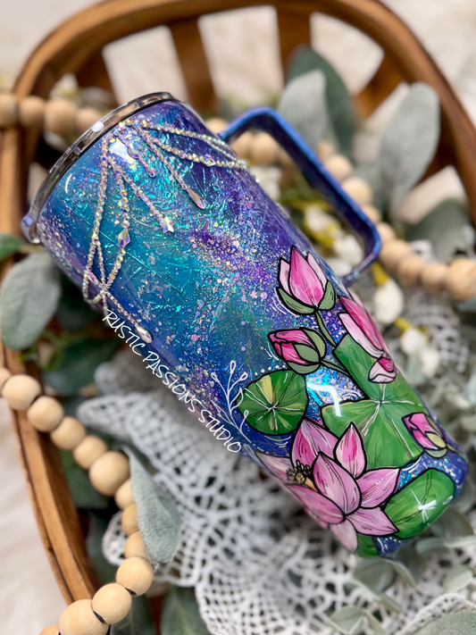Hand Painted 24oz handled curve Fairy, Lotus Celestial Tumbler with Rhinestones (Copy)