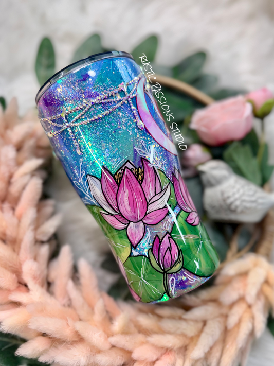 Hand Painted 20 oz curve Fairy, Lotus Celestial Tumbler with Rhinestones