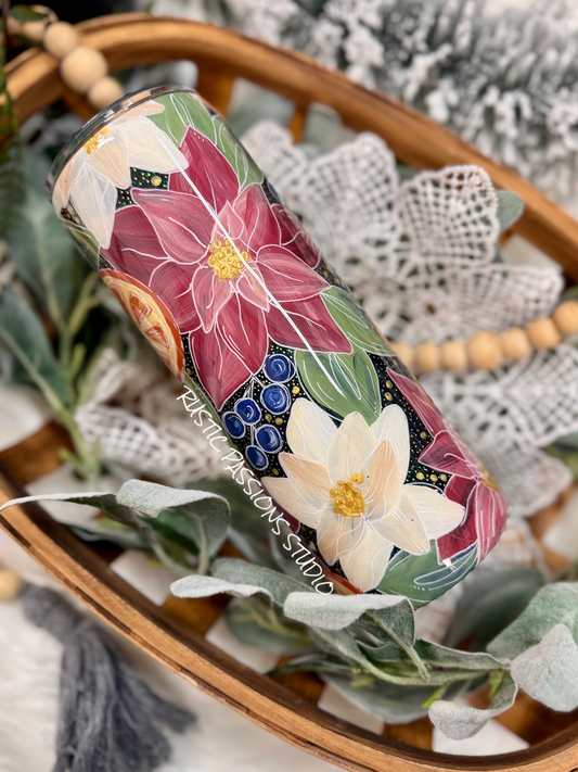 Hand painted 24oz Holiday Ornament, florals and dried oranges
