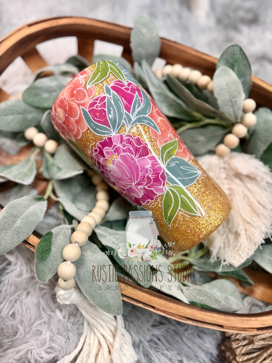 Hand Painted 20 oz curve Hydrangeas & Peonies