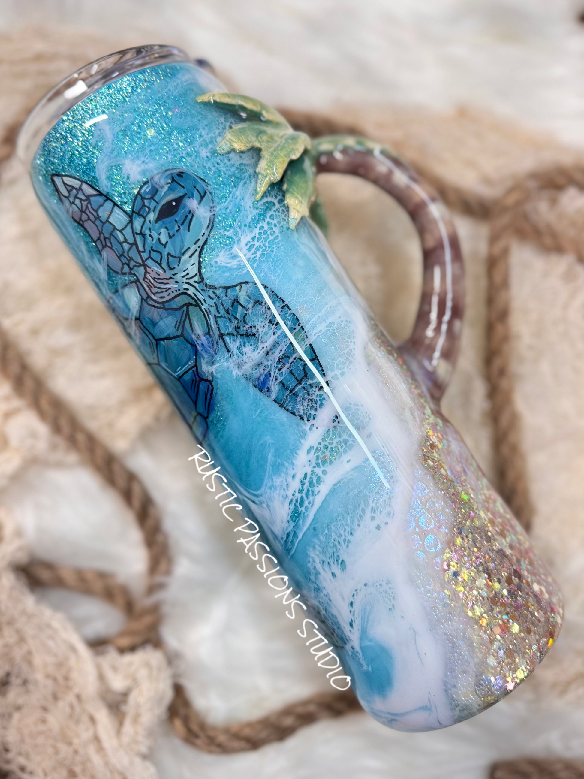 24 oz Plump Hand Painted Sea Turtle Beach Tumbler