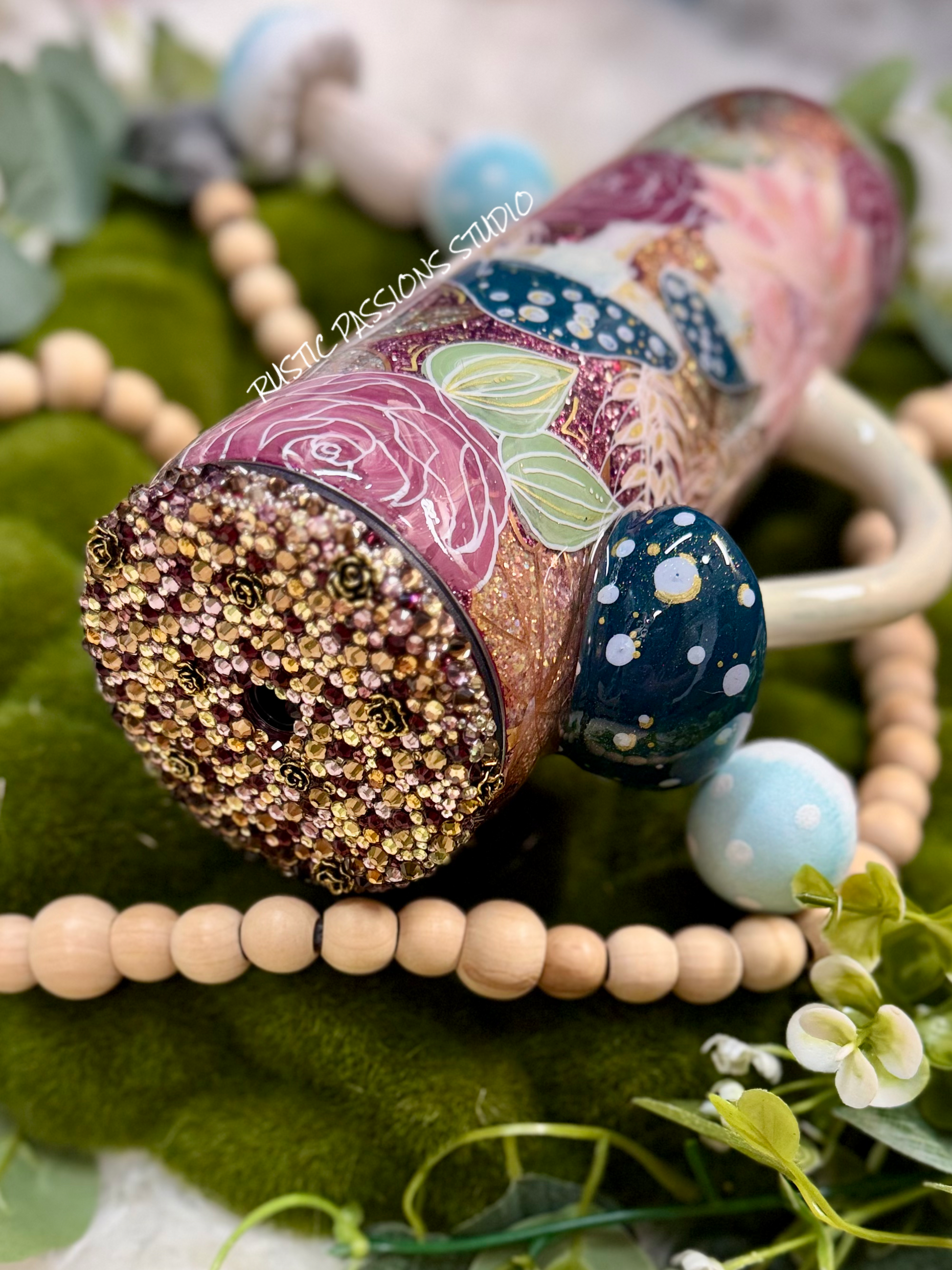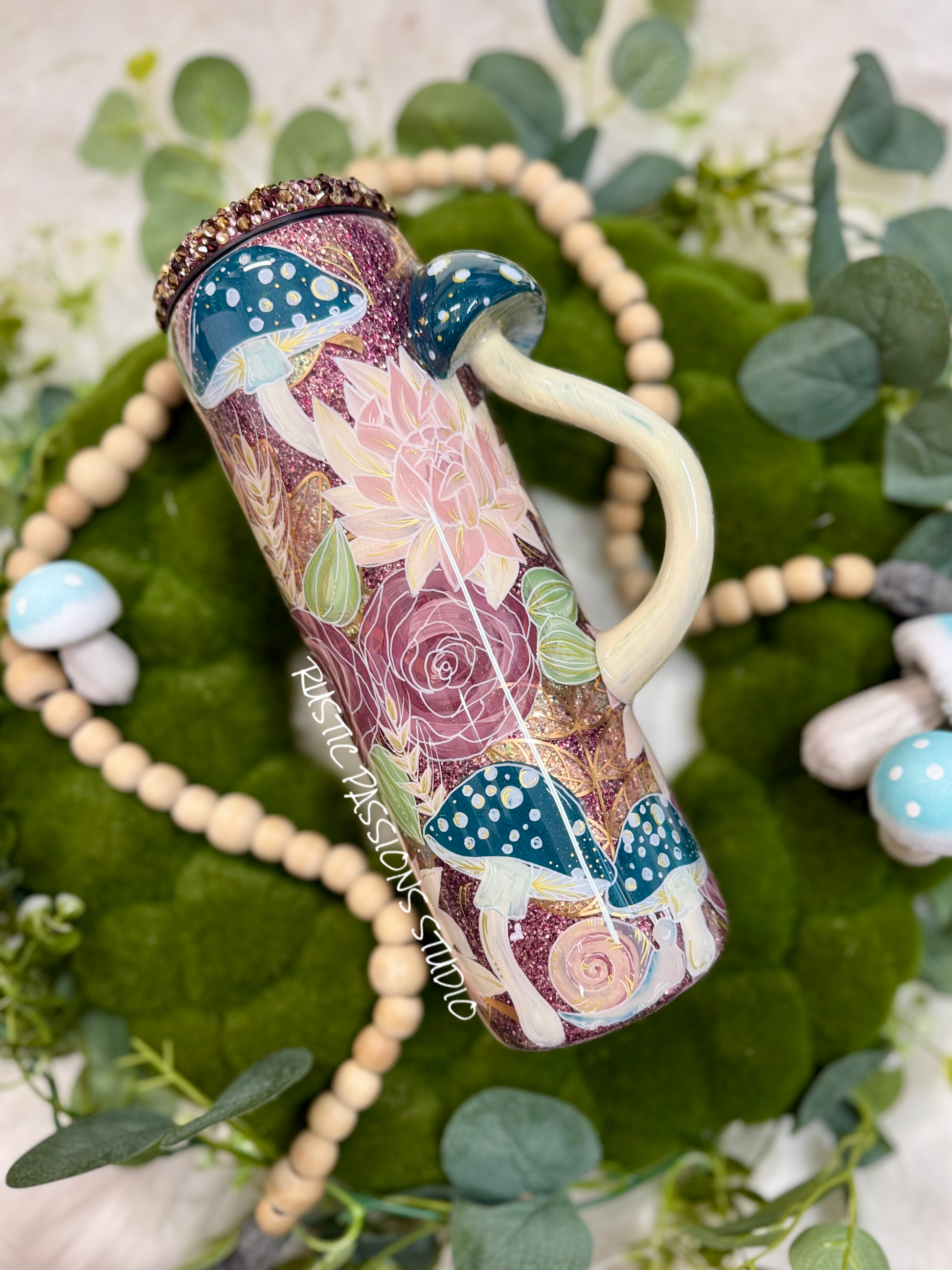 30 oz hand painted Fall Mushroom and Floral Tumbler, handle and lid
