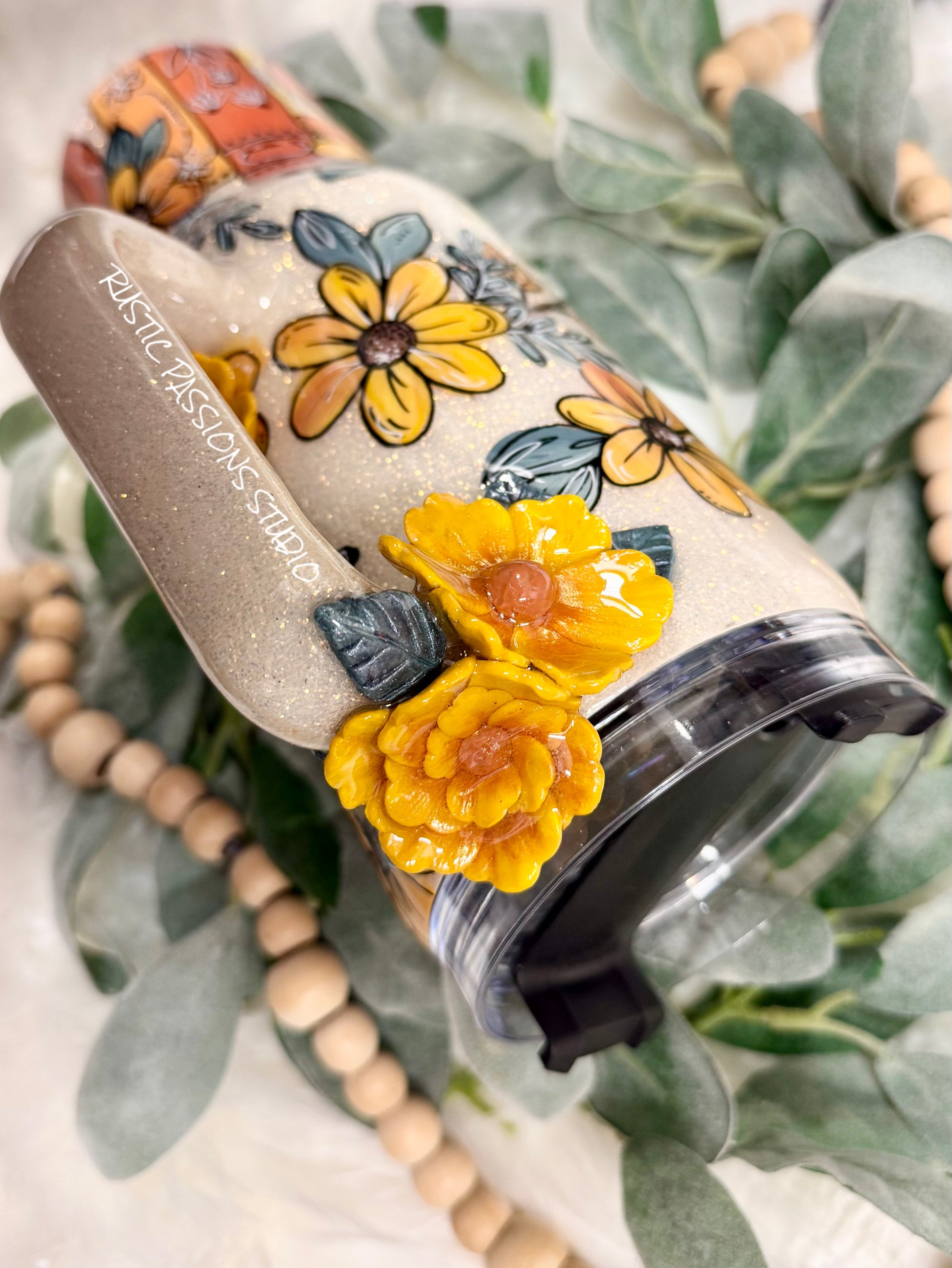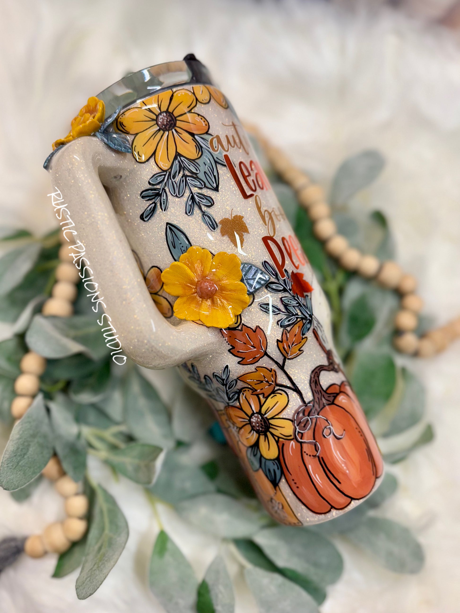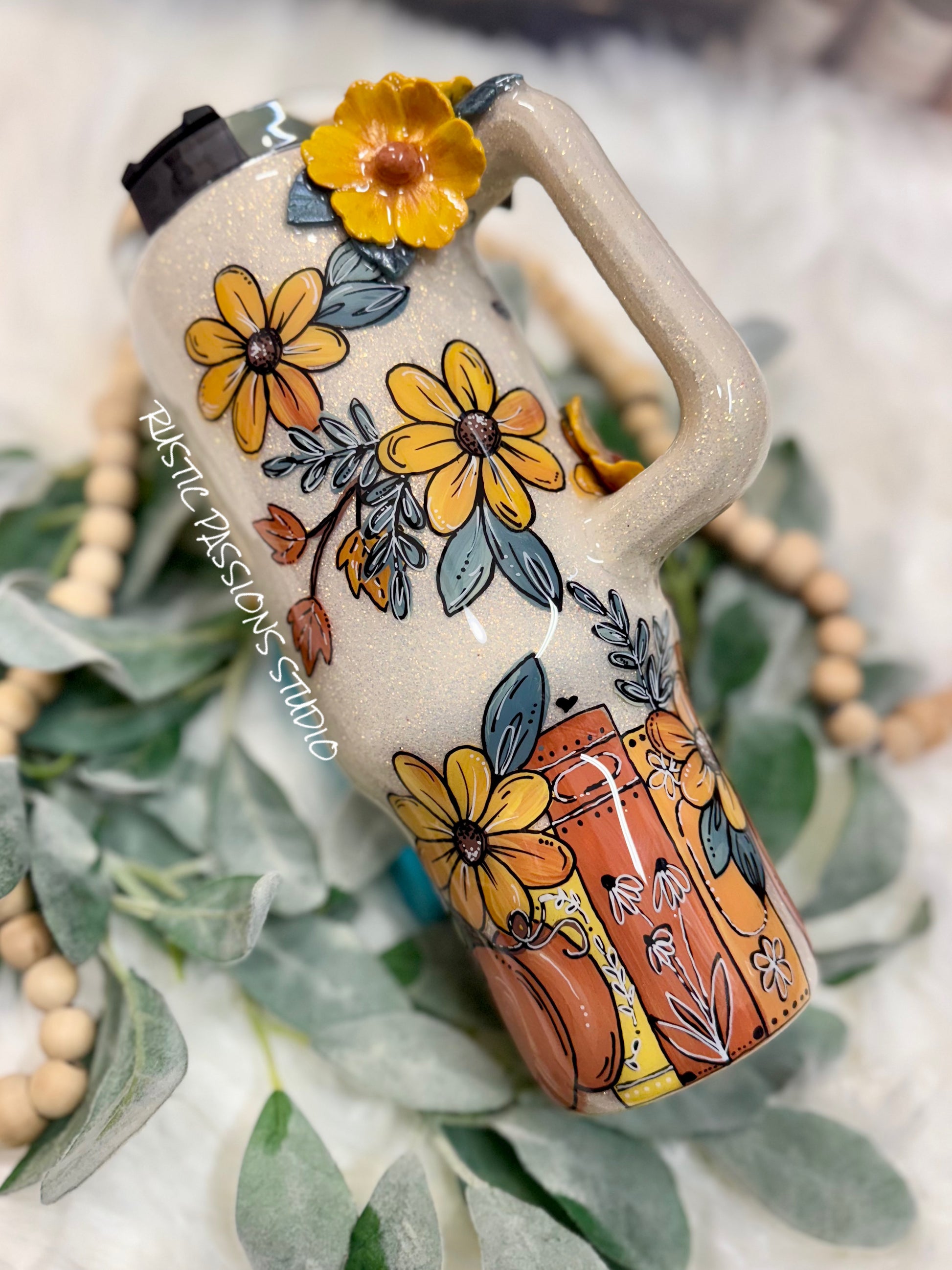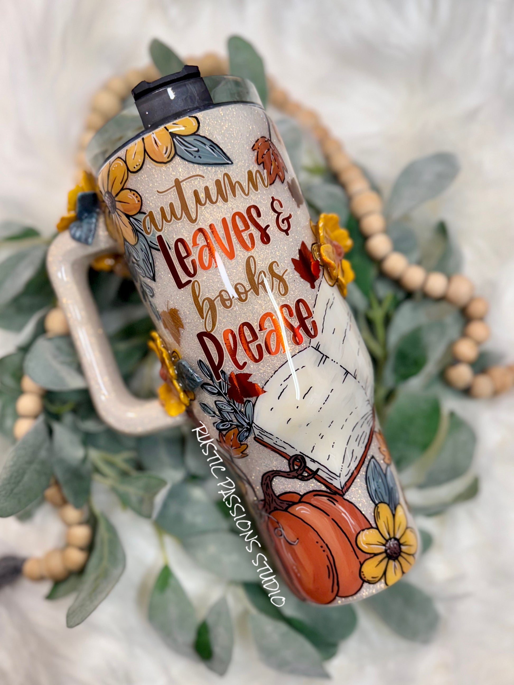 40 oz Hand Painted Fall Florals and Books