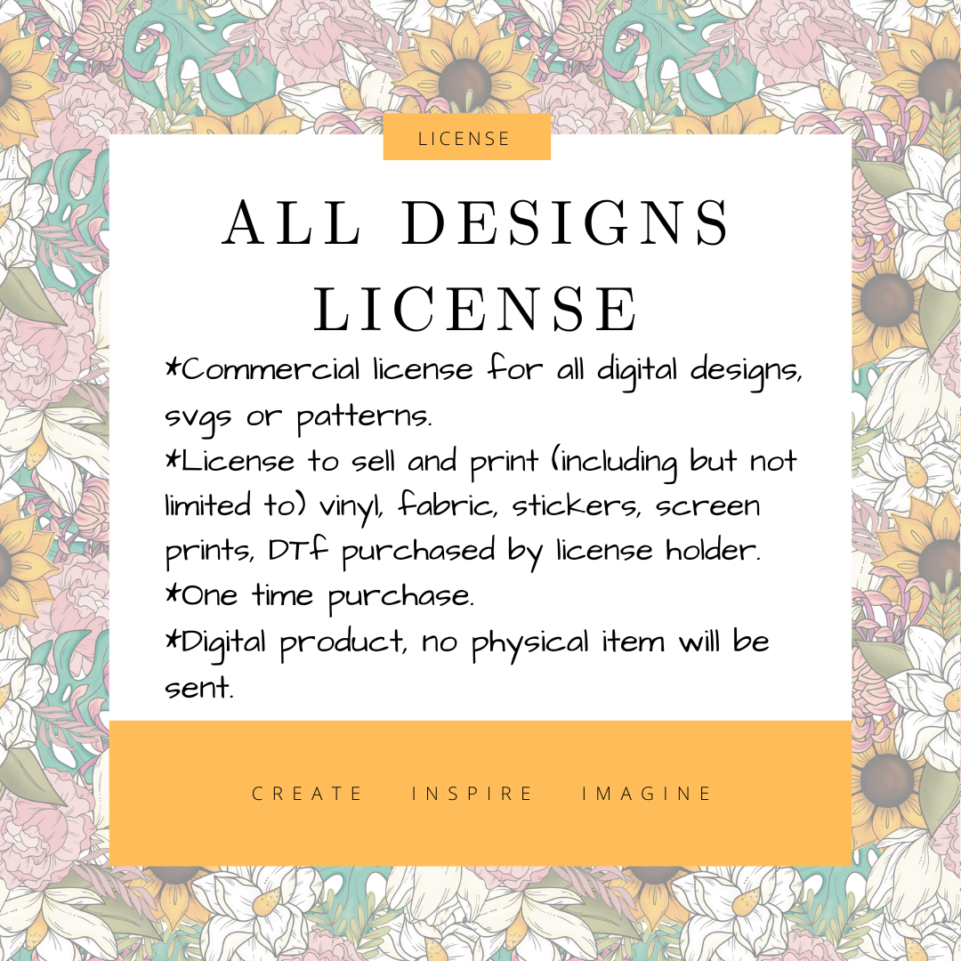 This listing is for a commercial use license allowing you to purchase and use any digital designs sold by Rustic Passions Studio LLC.