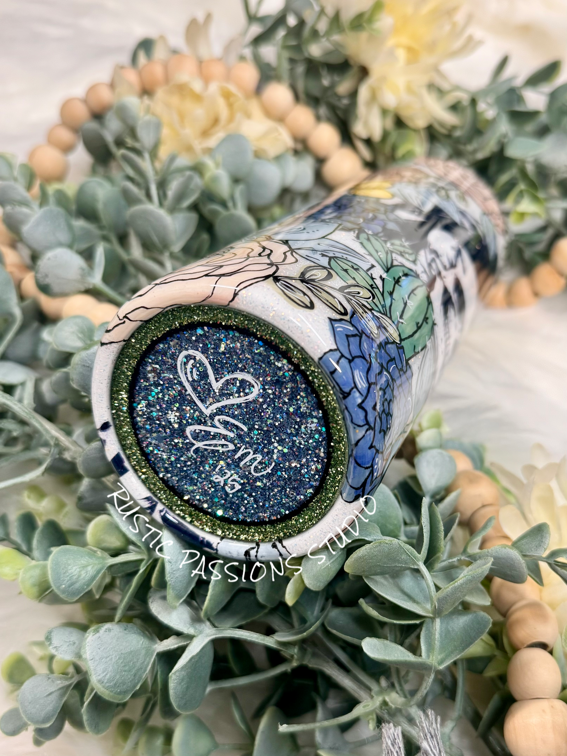 BOHO floral Crow and Skulls, Hand Painted 24 oz Plump